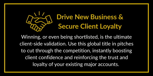 We are not just searching for the biggest or most creative agency. We are actively seeking those who have the full package: agencies demonstrating world-class innovation, culture, new business performance, and thought-leadership that drives the industry forward.